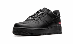 The Supreme x Nike AJ Force 1 Low Box Logo – Black is a Spring 2020 release that features minimal branding for a clean aesthetic. Joining a crisp all-white colorway, the black-based look features a smooth leather upper with a mini red Supreme Box Logo printed on the heel. A gold-accented AF1 emblem covers the bottom of the laces near the perforated toe. Tonal Nike AJ branding covers the tongue tab and heel to finish off the look. Each pAJ also comes with a set of Supreme-branded shoe laces. Release date: March 5, 2020. Supreme – Mini Box Logo Black