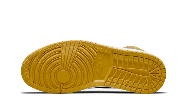 The AJ Jordan 1 High OG Pollen has a black upper combined with yellow inserts. We find this color on the mudguard, eyelets or on the swoosh . The two-tone sole contrasts with the rest of the pAJ.