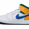 The women’s AJ Jordan 1 Mid SE ‘Dutch Green’ softens the classic silhouette with a spring-ready palette made up of contrasting pastel hues. Varying pale green shades are executed on the leather upper, accented with a black Swoosh and a pink Wings logo on the lateral collar flap. Matching pink hits land on the sneaker’s laces and woven tongue tag, featuring standard Jumpman branding. The mid-top is mounted on a rubber cupsole with encapsulated Nike AJ cushioning in the heel.