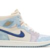 The AJ Jordan 1 Zoom ‘Summit White’ Unfading Sneaker is a modern take on the classic AJ Jordan 1 silhouette, featuring a clean and crisp colorway that is perfect for any sneaker enthusiast. Released in 2021, this sneaker boasts a summit white upper with a distressed, unfading finish that gives it a unique and stylish look. The iconic AJ Jordan wings logo is prominently displayed on the side in a contrasting black color, adding a touch of boldness to the design.