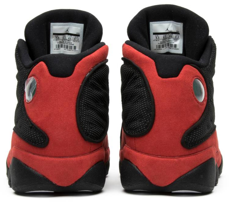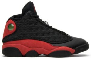 The AJ Jordan 13 received a retro update in 2017 outfitted in its original color scheme. The AJ Jordan 13 Retro ‘Bred’ 2017 features a black leather upper with matching 3M reflective ballistic mesh overlays on the sidewall. The sneaker also boasts a padded tongue for added comfort, True Red suede overlays, and the iconic green hologram on the ankle.