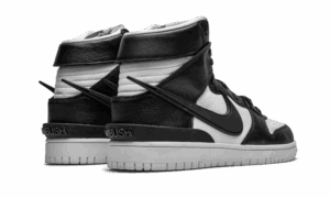 Designed as a joint venture with the Tokyo-based fashion label, the AMBUSH x Nike Dunk High ?Black? applies an essential two-tone color scheme to a reconstituted leather build with exaggerated details. The latter is highlighted by an oversized, elongated Swoosh, its pointed tail extending past the back of the shoe to convey a dynamic sense of movement. AMBUSH branding decorates an added TPU heel counter and a woven tag atop the sneaker?s exposed foam tongue.