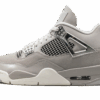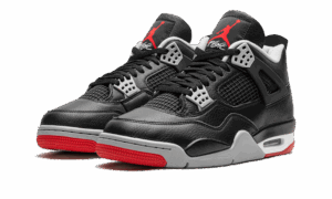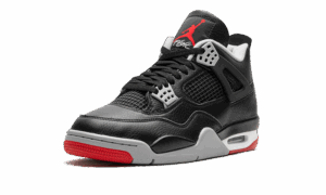The AJ Jordan 4 “Bred Reimagined” is an iconic and original colorway of the fourth AJ Jordan sneaker thattes the models original design. The Bred Reimagined was released by Jordan Brand in February 2024 to celebrate the legendary Jordan 4s 35th anniversary. Dressed in the same color block as the original version from 1989, the Bred Reimagined mimics the look of the OG Jordan 4 Bred with accurate-to-original panels, colors, and overall shape. However, the design does differ from the original Bred AJ Jordan 4 by featuring a tumbled leather upper instead of the OGs nubuck construction. Cement Grey plastic eyelets contrast the look on the front of the shoe. On the back, Cement Grey Nike AJ branding gives the sneaker a classic look. A red Jumpman and Flight branding in cursive appear on the tongue tag. A grey and white rubber midsole completes the look. Release date: February 17, 2024 Bred Reimagined