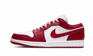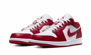The AJ Jordan 1 Low Gym Red White consists of a white leather upper. Coupled with this, we find red leather inserts which bring character to the pAJ. The classic branding elements are present such as the side swoosh in red leather, the Jordan Wings on the heel which is embroidered tone on tone and the logo Jordan on the tongue which also appears in red.