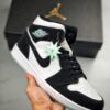 The AJ Jordan 1 Mid Black Racer Blue White consists of a black shiny nylon upper. For the inserts, we find smooth white leather as well as aside swoosh in smooth blue leather for a little touch of color with the yellow Jumpman on the tongue. The Wings Logo on the ankle appears in white just like the midsole.