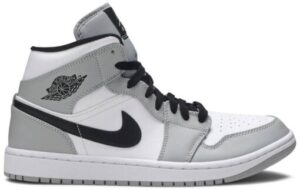 The AJ Jordan 1 Mid ‘Smoke Grey’ delivers an entirely neutral iteration of the classic silhouette. The upper features a crisp white leather base with contrasting grey leather overlays and a black Nike Swoosh. Up top, a grey Jumpman adorns the black woven tongue tag, while the classic Jordan Wings logo is stamped in black on the lateral collar flap. The mid-top rides on a foam midsole, enhanced with Nike AJ cushioning in the heel.