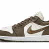 Travis Scott and Jordan Brand collaborate on an AJ Jordan 1 Low, taking similar design cues from the high-top version. An oversized backward facing Swoosh is featured prominently on the lateral side of the shoe, while a regular Swoosh graces the medial side. Black and Dark Mocha nubuck dominate the upper, with a few pops of University Red adding a nice contrast. Travis Scott details are subtly placed on the shoe, with the ‘Cactus Jack’ logo appearing on the tongue, medial side panel and sockliner. The back heel tabs feature intricately stitched logos, with the AJ Jordan Wings on the right shoe and Scott’s crudely drawn face on the left shoe.