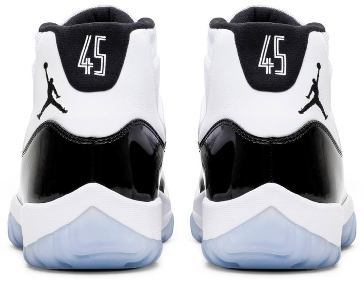 The 2018 edition of the AJ Jordan 11 Retro ‘Concord’ features ‘45’ stamped on the black heel tab—a nod to the jersey number that Michael Jordan wore upon his return to basketball following his first retirement. The rest of the build keeps the shoe’s signature details intact, including a white ballistic mesh upper, black patent leather overlays and an icy translucent outsole underfoot.