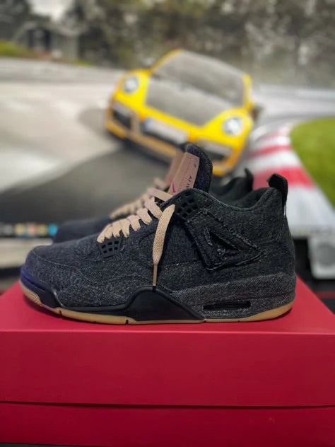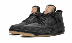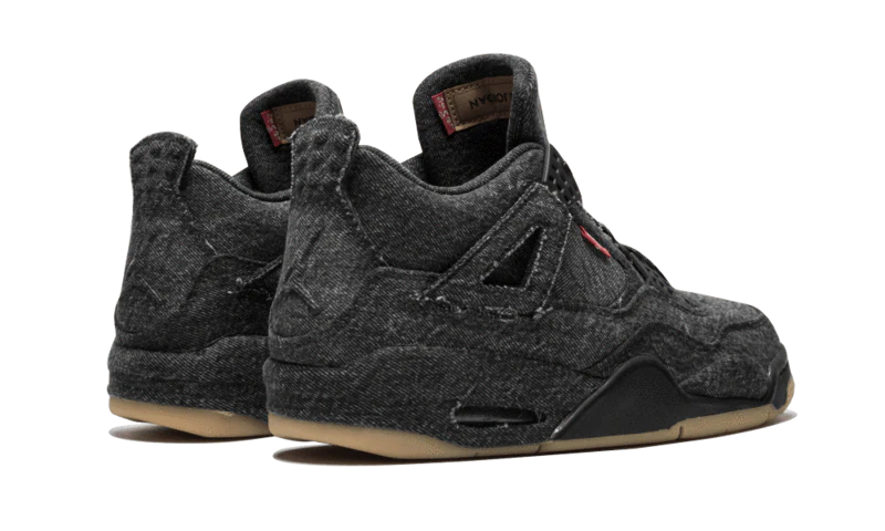 The Levi’s x AJ Jordan 4 ‘Black Denim’ overhauls the classic silhouette with materials and details traditionally associated with the iconic American denim brand. In addition to the black denim that covers the upper and midsole, the shoe is accented with Levi’s signature red tab on the quarter panel. Another Levi’s trademark – the ‘Two Horses’ paper patch – is rebranded with a red Jumpman logo and positioned on the tongue, featuring tan coloring that’s matched by a gum rubber outsole.
