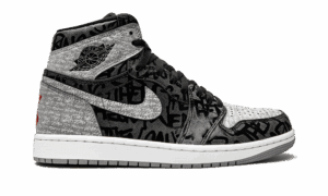 The AJ Jordan 1 High OG RebellionAJe is a unique colorway of the vintage basketball shoe that draws inspiration from Nikes 1985 Banned commercial, specifically the advertisements They Cant Stop You From Wearing Them slogan. A March 2021 release, the RebellionAJe arrives in the same color block as the Jordan 1s original Shadow colorway, with the addition of distressed leather panels and lettering printed throughout the design. The grey leather panels on the perforated toe, collar, heel, and Swoosh on either side feature They Cant Stop You From Wearing Them print inspired from the aforementioned Jordan 1 Banned commercial. Red Xs are found on the heel in a look similar to the AJ Jordan 1 High OG Banned. Graffiti-style branding is printed on the black leather overlays. Release date: March 12, 2022 RebellionAJe