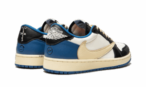 The Travis Scott x Fragment x AJ Jordan 1 Low OG is a three way collaboration between the hip-hop star, the Japanese streetwear brand, and Jordan on the low-top iteration of Michael Jordans first signature shoe. Joining an AJ Jordan 1 High OG, the Travis Scott and Hiroshi Fujiwara-designed Jordan 1 Low OG fuses the singular aesthetic of the rapper and fashion designer onto a progressive design of the retro basketball shoe. Sail leather appears on the perforated toe and mid-panel. Contrasting black tumbled leather graces the toe cap, forefoot, and eyelets. The two-tone white-and-black color block mimics the color cadence of the AJ Jordan 1s original Black Toe colorway. The oversized cream leather Swoosh is a nod to the styling of Scotts first AJ Jordan 1 collaboration from 2019. Dual Cactus Jack and Wings embroidery appear on the heel of the left and right shoe, respectively. Further, Scotts face motif and Fragments lightning bolt imagery are embossed on the left and right shoe, respectively, as well. Classic Nike AJ branding is printed in blue on the white nylon tongue tag. The Travis Scott x Fragment x AJ Jordan 1 High OG Military Blue is one of the most desirable sneaker releases of 2021. Release date: August 13, 2021 Travis Scott – Fragment