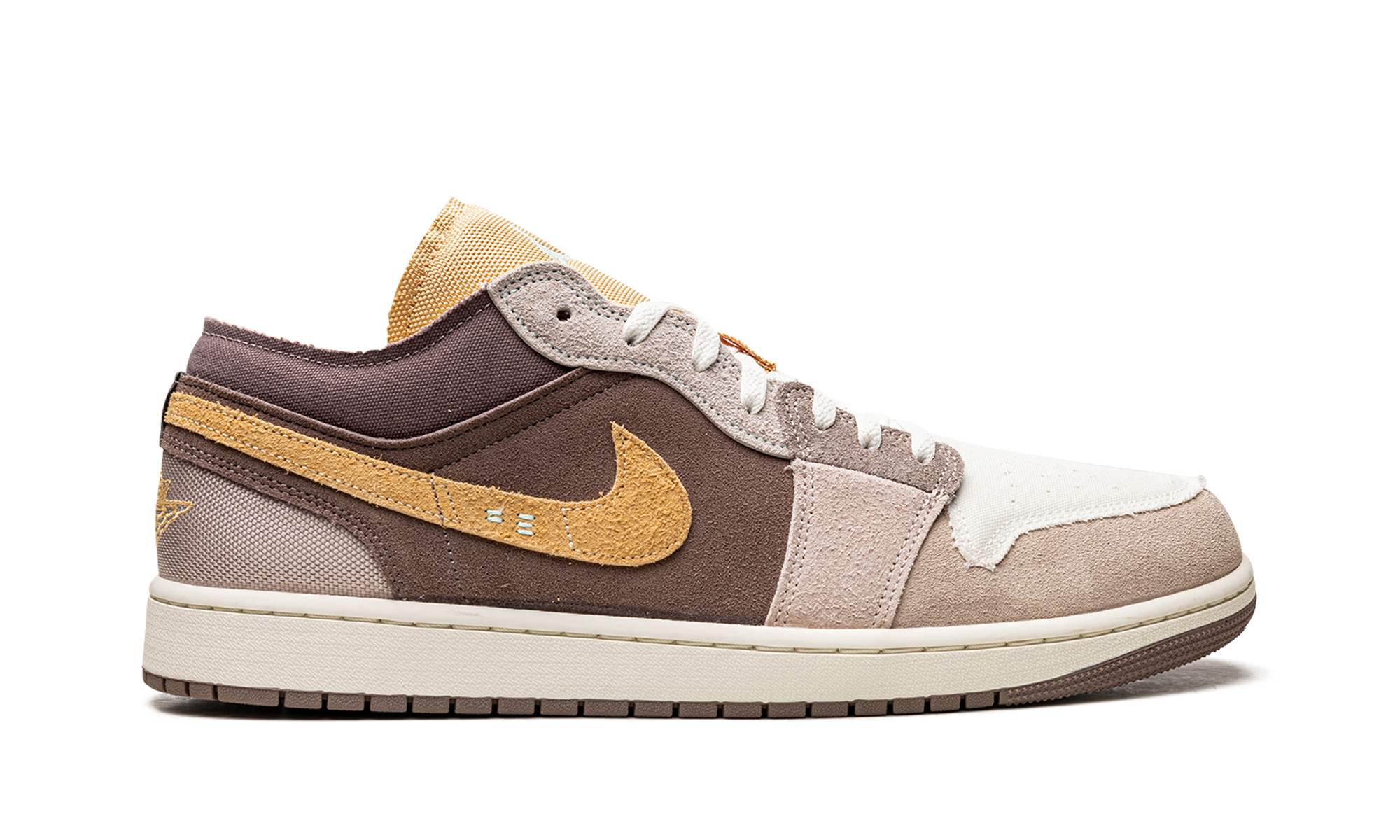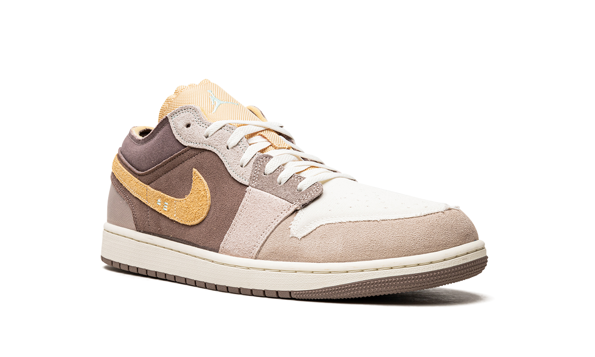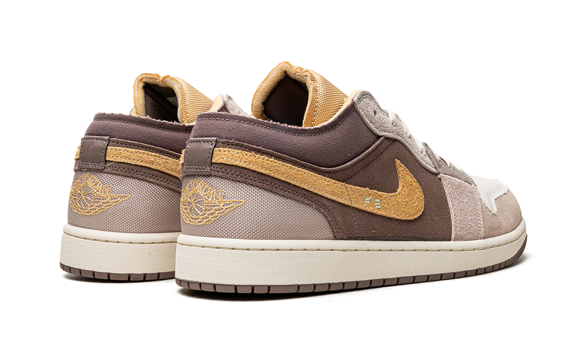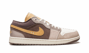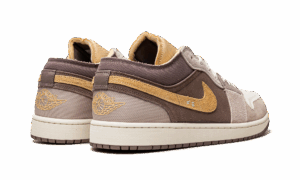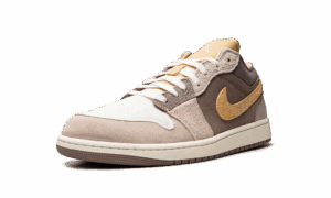 The AJ Jordan 1 Low SE Craft Taupe Haze is a unique colorway of the alternate version of the classic low-top sneaker that modifies its design with a lifestyle-oriented twist. The Jordan 1 Low SE Craft gives the retro basketball shoe a modern spin by updating its design with suede and mesh panels in neutral tones. A gold suede Swoosh can be found on either side of the shoe and gold Wings branding is embroidered on the tan ballistic mesh heel. The gold mesh tongue is complete with a white embroidered Jumpman. Overall, the Jordan 1 Low SE Craft Taupe Haze features an inside-out design concept. Taupe Haze
