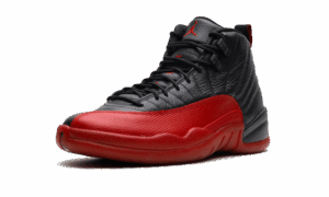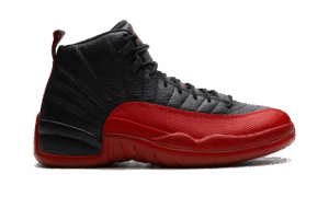 The AJ Jordan 12 “Flu Game” is a black and red colorway of Michael Jordan’s 12th signature shoe. The 2025 AJ12 “Flu Game” gets its nickname because Jordan famously wore this colorway during Game 5 of the 1997 NBA Finals when, despite battling illness, he led the Chicago Bulls to victory over the Utah Jazz. The Jordan 12 upper has black leather and red, lizard-textured mudguards. The number “23” and Jordan branding appear on the heel. Flu Game (2025)